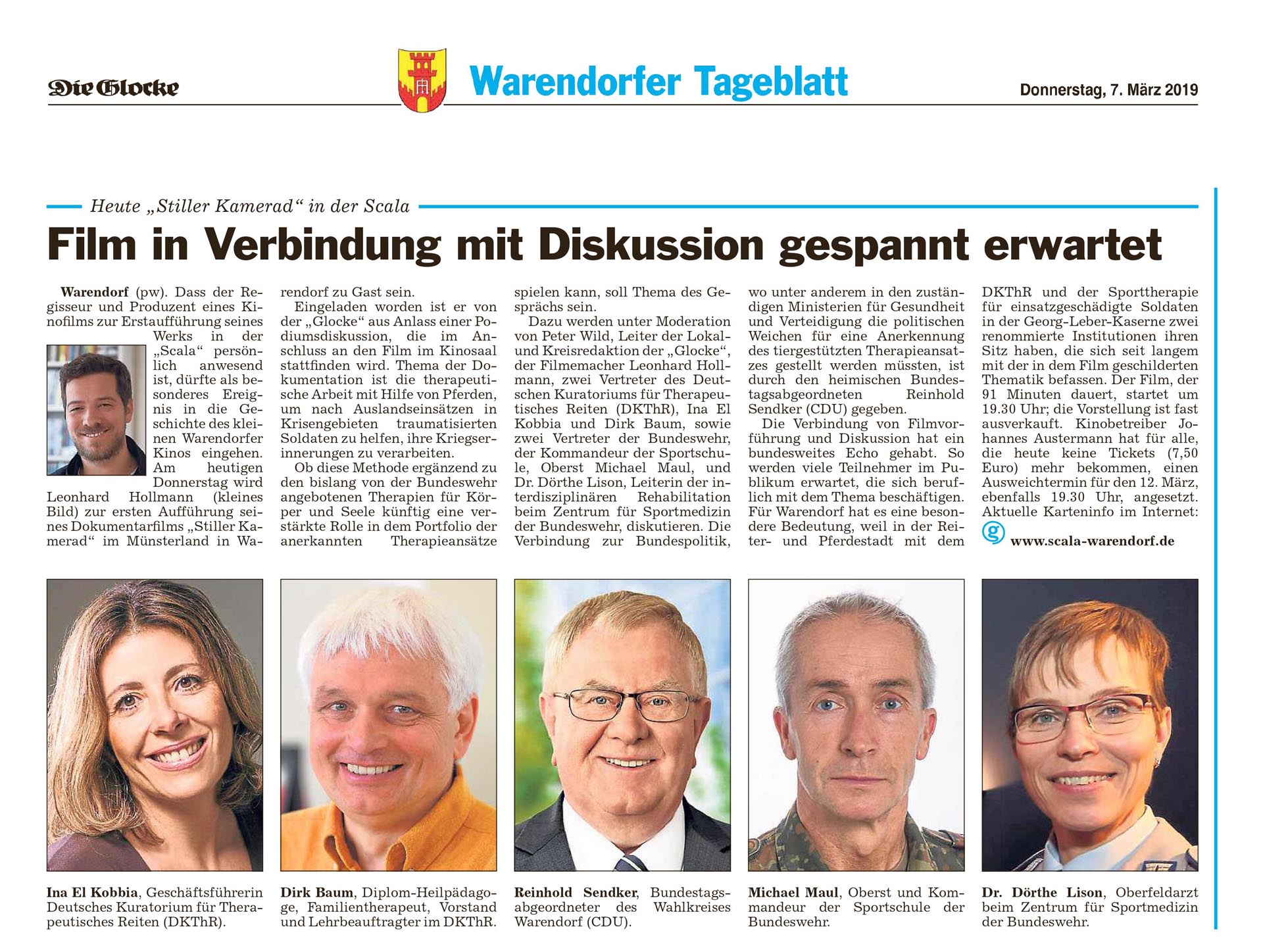 Am heutigen Donnerstag wird Leonard Hollmann zur ersten Aufführung seines Dokumentarfilms “Stiller Kamerad” im Münsterland in Warendorf zu Gast sein …
